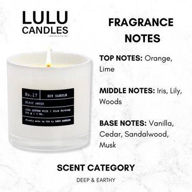 Experience the perfect harmony of musky amber, zesty lime, and blonde woods with Lulu Candles’ Black Amber. Hand-poured in small batches using our premium soy wax blend, this artisan candle delivers a clean, long-lasting burn that fills your space with a luxurious blend of aromas.