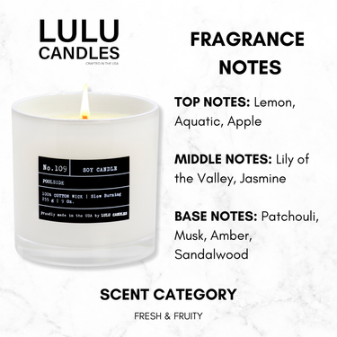 Experience the perfect harmony of green apple and aquatic notes with Lulu Candles’ Poolside. Hand-poured in small batches using our premium soy wax blend, this artisan candle delivers a clean, long-lasting burn that fills your space with a luxurious blend of aromas.