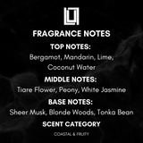 Experience the perfect harmony of white florals, coconut water, and sweet tonka bean with Lulu Candles’ Island Coconut Reed Diffuser. Hand-crafted with premium fragrance oils, this elegant diffuser offers continuous, long-lasting scent that naturally fills your space — no flame or electricity required.